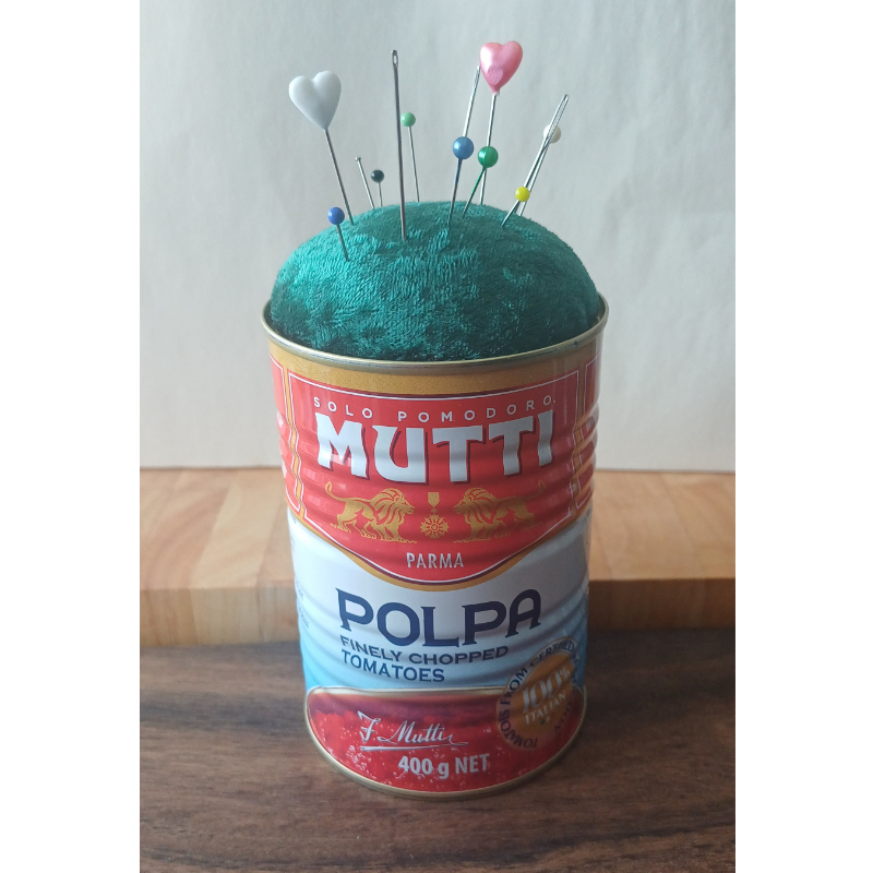 They’re a lovely stylish addition to have on your sewing bench or a great gift for anyone who sews. This one is a 400g size tomato can and measures approx. 8cm x 12cm.